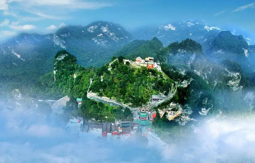 武當(dāng)山風(fēng)景區(qū),又稱武當(dāng)山風(fēng)景名勝區(qū),是位于湖北省十堰市丹江口市的旅游景區(qū),景區(qū)總面積312平方千米。武當(dāng)山又名太和山,武當(dāng)山風(fēng)景區(qū)有太極湖、玄岳門、太子坡、南巖宮、金頂、紫霄宮、五龍宮、瓊臺八大景區(qū),屬自然景觀和人文景觀完美結(jié)合的山岳型風(fēng)景名勝區(qū)。武當(dāng)山勝景有箭鏃林立的72峰、絕壁深懸的36巖、激湍飛流的24澗、云煙霧蒸的11洞、玄妙奇特的10石9臺等。主峰天柱峰海拔1612米,被譽為“一柱擎天”。天造玄武、天然“真武梳妝像”,以及“七十二峰朝大頂,二十四澗水長流”等神秘玄妙的自然景觀。