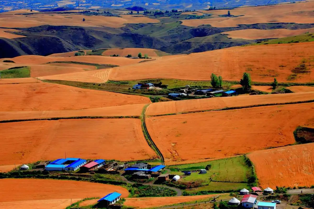 - 秋季:一眼望不到邊的江布拉克山巒上,起伏的金黃色麥浪,麥田,大捆大捆的麥垛,是攝影的好時(shí)節(jié)。