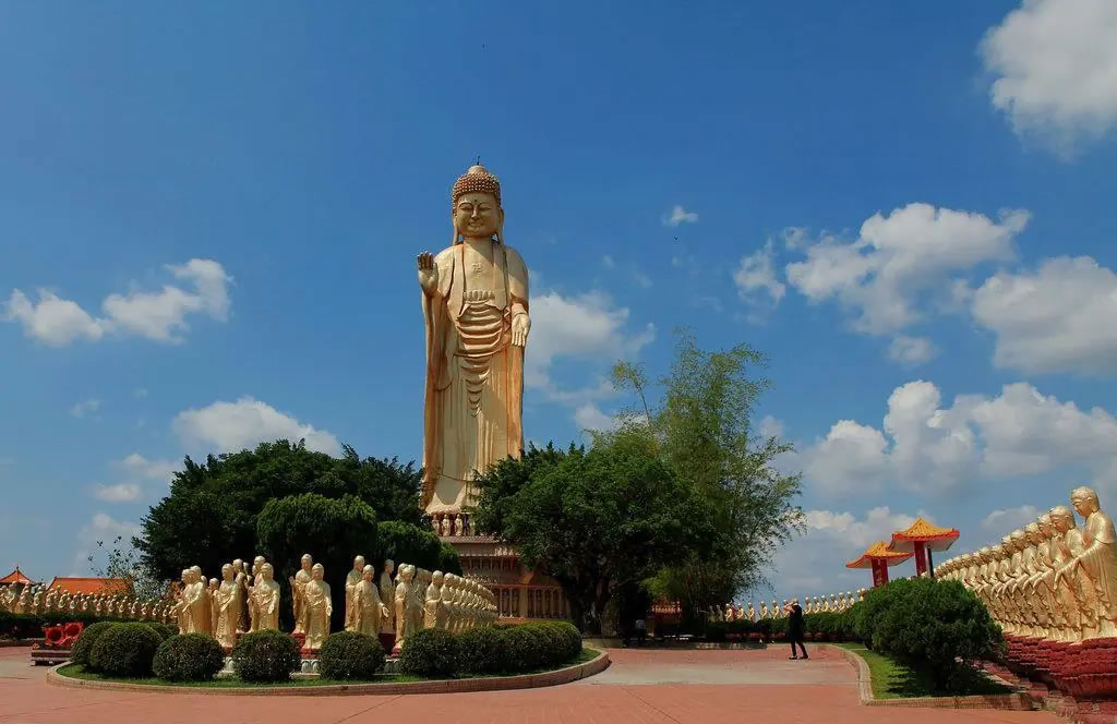 - 佛光山因佛光時(shí)顯而得名,是佛教祥源沃土,歷史悠久,香火繁盛。
