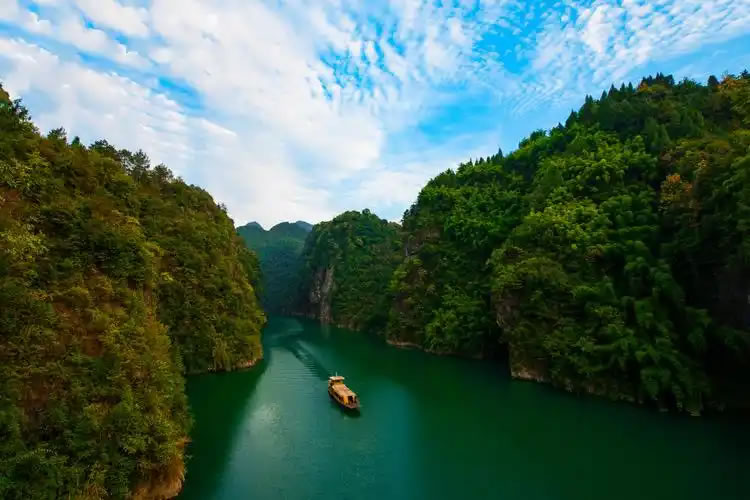 - S形河道:全程27道彎、28個“一線天”門,詩人形容“船到崖前疑無路,調(diào)轉船頭又一彎”。