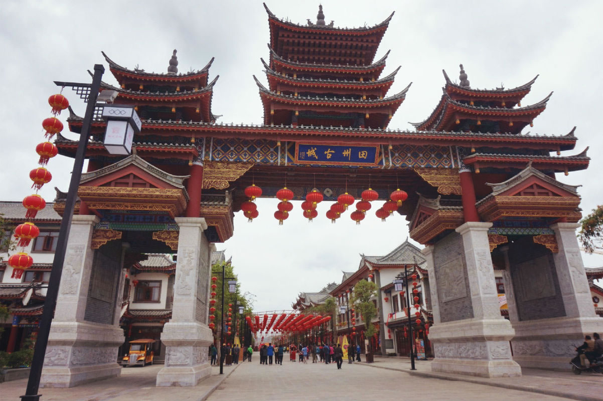 田州古城,位于廣西壯族自治區(qū)百色市田陽區(qū),廣西壯族自治區(qū)西部,右江河谷中游。東鄰田東縣,南接德?h,西與百色市右江區(qū)接壤,北界巴馬瑤族自治縣。田陽是壯族的發(fā)祥地,是明代抗倭女杰瓦氏夫人的故鄉(xiāng),是鄧小平等老一輩無產(chǎn)階級革命家創(chuàng)建的右江革命根據(jù)地之一。田州古城以壯文化為靈魂,以古建筑為平臺(tái),占地1500畝,總建筑面積高達(dá)90萬平方米,是集文化、旅游、商業(yè)、居住為一體的大型文化旅游古城。