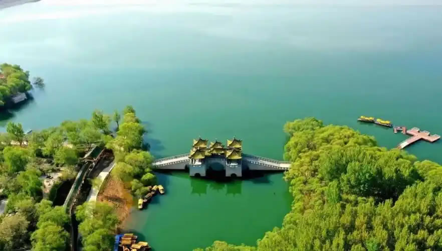 - 歷史背景:原為1958年建成的三岐水庫(kù),總庫(kù)容1.7億立方米,以防洪為主,兼具灌溉、發(fā)電功能,F(xiàn)為國(guó)家AAAA級(jí)景區(qū),融合佛教文化、自然景觀與休閑度假,擁有800公頃水域、千米長(zhǎng)廊及50米高漢白玉觀音像。