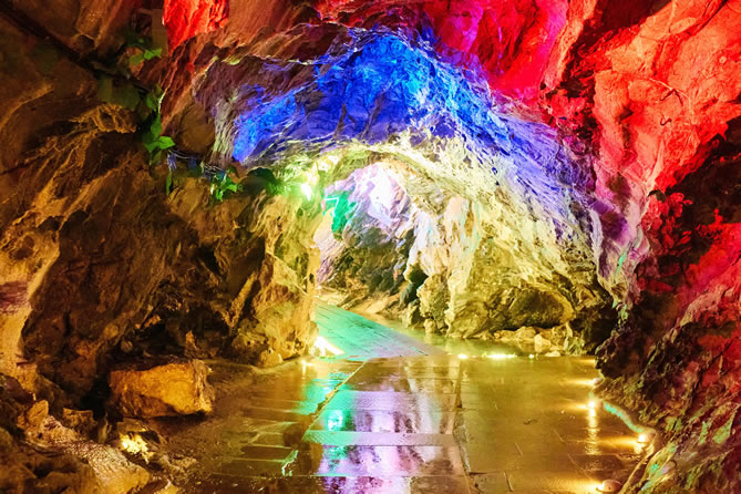 安徽華陽洞,位于安徽省含山縣東北7.5千米處。唐朝貞觀年間,高僧慧褒和尚云游到這里所以就在山下修房子所以得名。洞深1600米,“洞中有洞,洞里有河。河上泛舟,洞洞相通。”