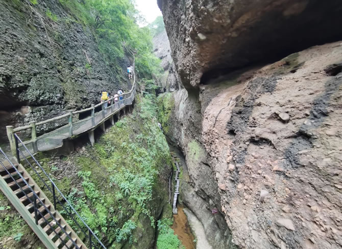 - 一線天:峽谷最窄處僅60厘米,頂部巖縫透入陽光,形成光影交錯的神秘通道,需側(cè)身通過,全程設(shè)防滑石階與安全扶手。
