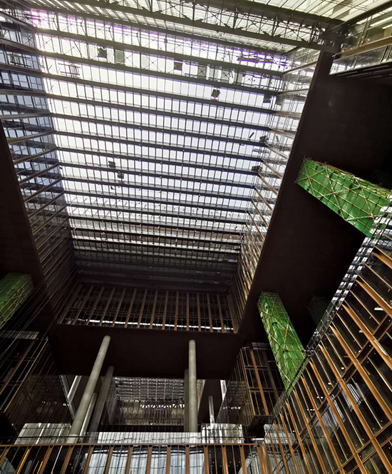 “傳統(tǒng)的腳手架是從下往上搭建,但經(jīng)過我們亞投行項(xiàng)目青年員工的創(chuàng)新,改為從上往下搭建,改變了架體的結(jié)構(gòu)形式,將本來需要60米高的滿堂架改為3米高的吊掛架,成功解決了首層樓板對架體承載力不足難題! 31歲的項(xiàng)目總工程師劉瑞軍每每談到創(chuàng)新使用吊掛腳手架裝修大跨度采光頂幕墻時,都神情飛揚(yáng),同時感慨萬千。