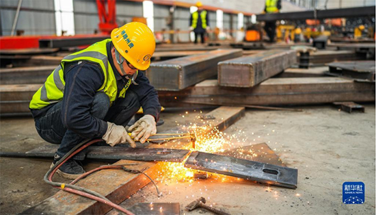 2月1日,工人在納晴高速六枝特大橋項目現(xiàn)場施工。新華社記者 陶亮 攝