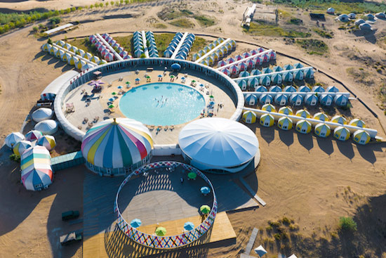 在沙漠中各種深淺的大型泳池里,以各種泳姿釋放自己——在沙丘起伏無際的沙漠里——在沙漠中屬于自己的水的世界里……累了,就躺在清爽的沙灘床上,美美地過上幾個(gè)小時(shí),同時(shí)可以與同行的人邊吃邊喝邊聊哦,別睡著了,演出一定會(huì)有的,悅沙島每天會(huì)有十多場不同的演出或比賽,是藝術(shù)的、是體育的……