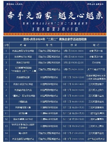2024年3月9日至11日,貴州貞豐將迎來盛大的“二月二”苗族走親節(jié)活動。本次活動由貞豐縣苗學(xué)會主辦,貞豐縣雙峰文旅集團協(xié)辦。