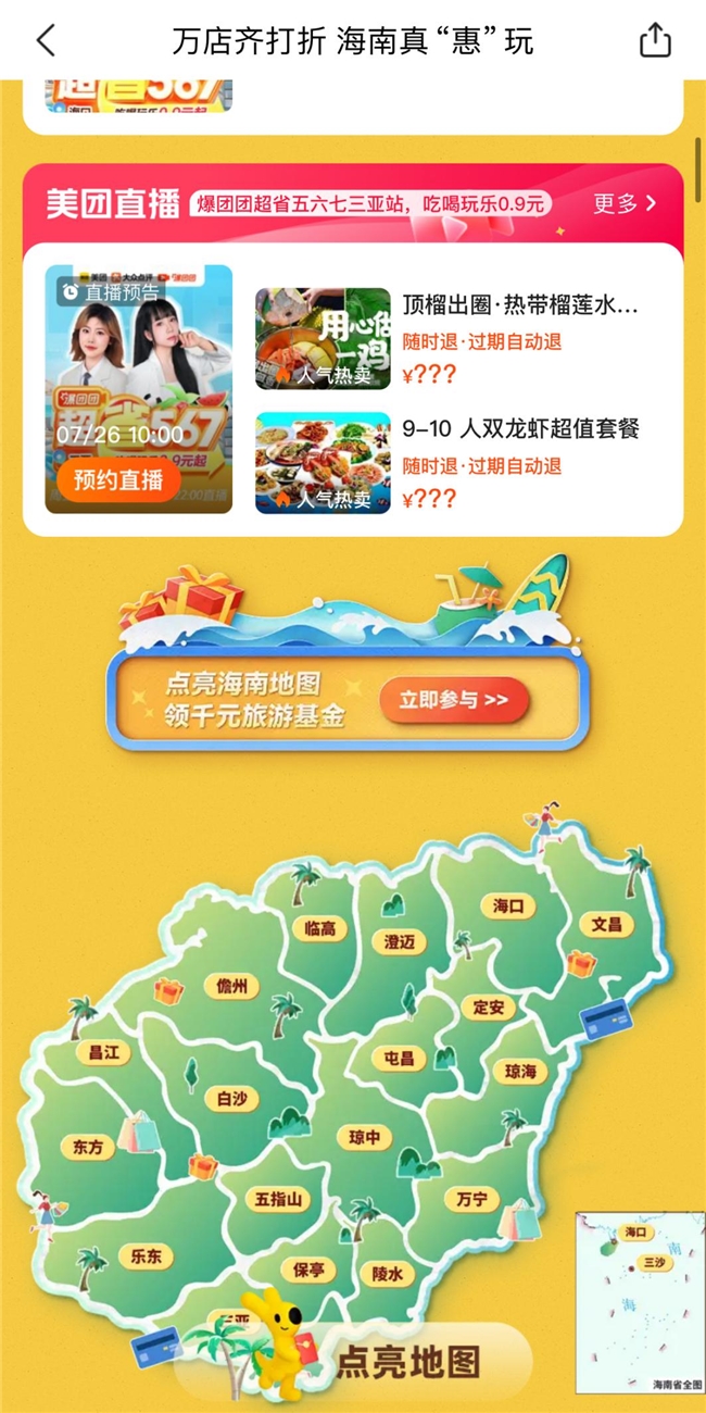 隨著暑期旅游高峰的到來(lái),海南省旅游和文化廣電體育廳攜手美團(tuán)共同打造的“萬(wàn)店齊打折·海南真'惠’玩”活動(dòng)正在如火如荼地進(jìn)行中。