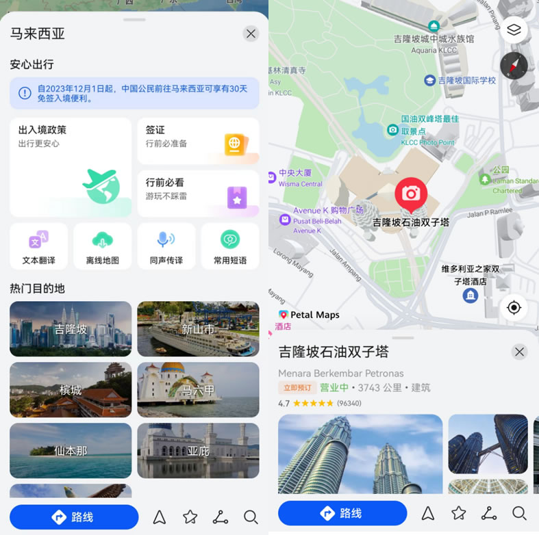 不用怕!Petal Maps是更適合中國(guó)寶寶的導(dǎo)航。它不僅原生默認(rèn)支持中文界面和語(yǔ)言導(dǎo)航,還能提供覆蓋全球 160+ 國(guó)家和地區(qū)的詳細(xì)地圖數(shù)據(jù),豐富的地理位置信息和精準(zhǔn)的路線規(guī)劃,能帶你輕松抵達(dá)目的地,發(fā)現(xiàn)隱藏的景點(diǎn)和美食。