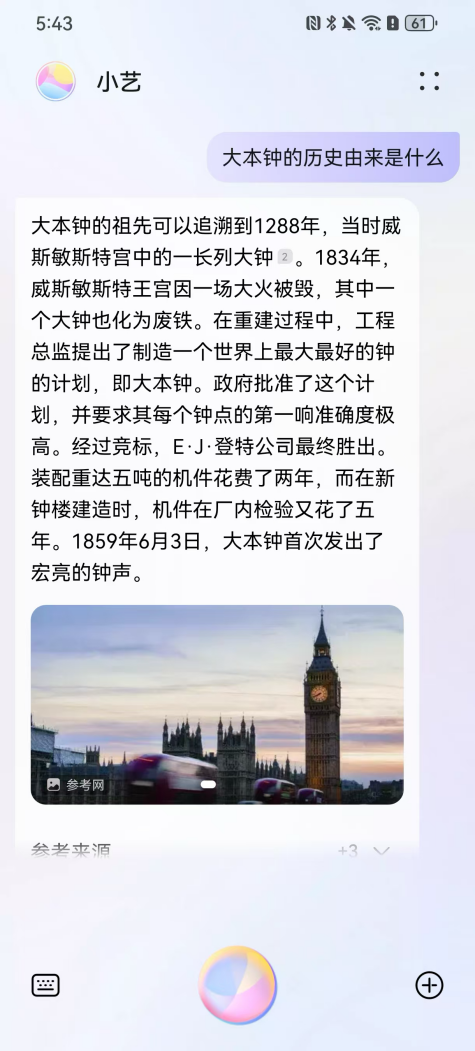 旅行途中遇到任何問(wèn)題,都可以向華為手機(jī)“問(wèn)一問(wèn)”。借助強(qiáng)大的AI技術(shù)底座,華為智慧助手小藝能夠理解你的需求,并提供精準(zhǔn)的答案和建議。例如,當(dāng)你漫步在倫敦街頭,被雄偉的大本鐘所震撼,卻對(duì)它的歷史一無(wú)所知時(shí),只需對(duì)著手機(jī)問(wèn)小藝:“大本鐘的歷史由來(lái)是什么?”,小藝就能為你娓娓道來(lái)它的前世今生,讓你對(duì)這座城市的歷史文化有更深入的了解。 或者,當(dāng)你站在巴黎圣母院前,想要了解這座哥特式建筑的藝術(shù)風(fēng)格,也可以向小藝提問(wèn),它會(huì)為你詳細(xì)介紹圣母院的建筑特點(diǎn)和歷史意義。