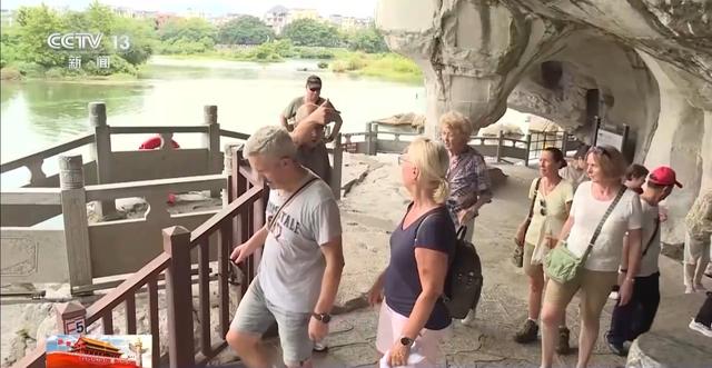 而在廣西桂林漓江之濱的伏波山景區(qū),30多名來(lái)自德國(guó)和奧地利的“銀發(fā)一族”正在探尋摩崖石刻的文化魅力。