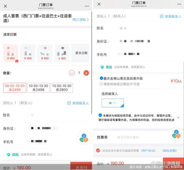 事實上,多數(shù)5A級旅游景區(qū)銷售保險時,并不會捆綁或默認勾選。以張家界等景區(qū)的官方購票渠道為例,提供了含保險和不含保險兩個購票選項;也有景區(qū)的購票平臺僅提供了保險勾選購買選項,并不會默認勾選。