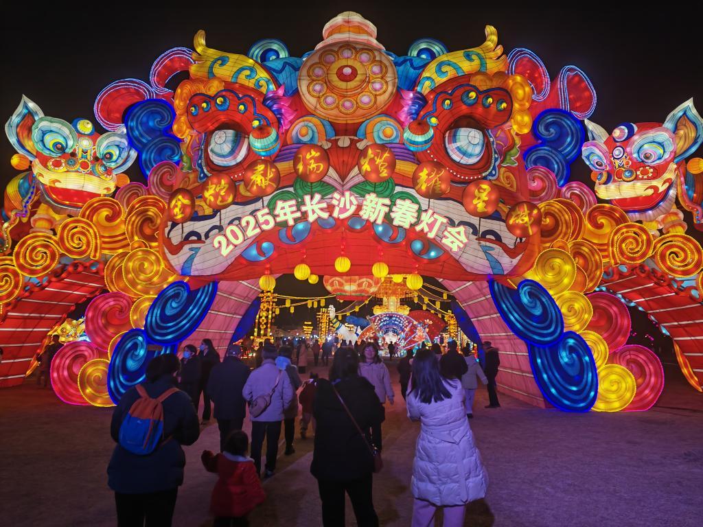 這是在華誼兄弟(長沙)電影小鎮(zhèn)舉辦的2025年長沙新春燈會現(xiàn)場。新華社記者白田田 攝