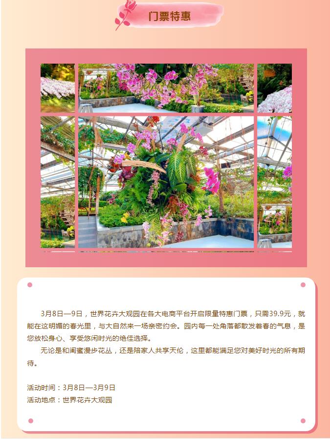 2025年3月8-9日限量特惠門票39.9元,在茗賞百花庭還可以領(lǐng)花卉盆栽