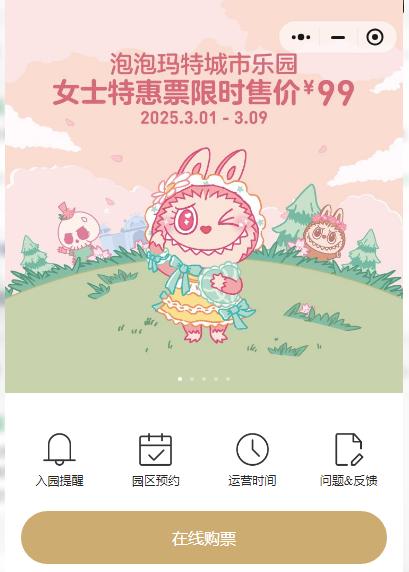 2025年3月1日至3月9日,女士特惠票限時售價99元/人(平日150元/人)