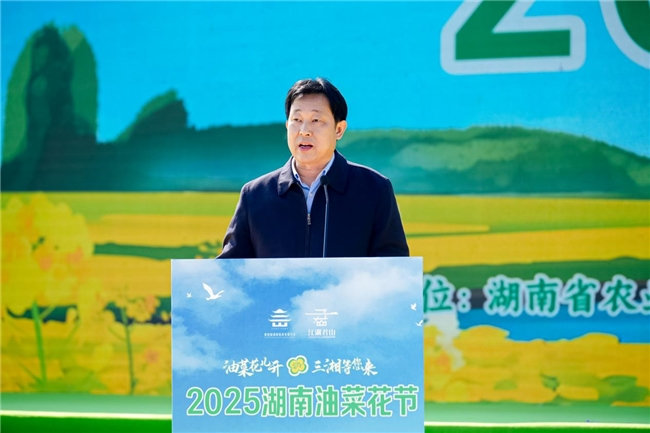 湖南省農業(yè)農村廳黨組成員、副廳長龔昕在致辭中指出,近年來,湖南省堅決貫徹落實國家保障糧油安全決策部署,持續(xù)打造油料特色千億產(chǎn)業(yè),油菜種植面積從2019年的1861.5萬畝擴大到2024年的2255萬畝,總產(chǎn)量達266.6萬噸,油菜全產(chǎn)業(yè)鏈產(chǎn)值突破570億元。做大做優(yōu)做強油菜產(chǎn)業(yè),農文旅融合是關鍵。舉辦湖南油菜花節(jié),就是要以花為媒、借花興業(yè),搭建起一個全方位展示湖南鄉(xiāng)村魅力的大舞臺,推動油菜產(chǎn)業(yè)多元化發(fā)展,帶動鄉(xiāng)村全域富美強。