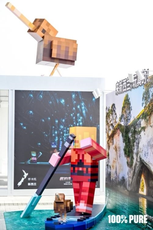 活動現(xiàn)場精心還原《我的世界》新西蘭模組中的蒂普亞毛利文化村和神奇峽灣兩個經(jīng)典場景,還加入中國游客喜愛的大教堂灣互動裝置,打造沉浸式體驗。參與者們仿佛置身于新西蘭的壯麗景觀之中,可以拍照打卡,留下難忘的瞬間。同時,活動現(xiàn)場還設(shè)置了游戲體驗區(qū),參與者們可以現(xiàn)場體驗《我的世界》新西蘭模組,在虛擬世界中開啟屬于自己的冒險之旅,感受新西蘭的無限魅力。這種沉浸式的體驗方式,讓參加活動的玩家和游客們完成從數(shù)字探索到現(xiàn)實感知的奇妙循環(huán),仿佛真的踏上了一場新西蘭之旅。