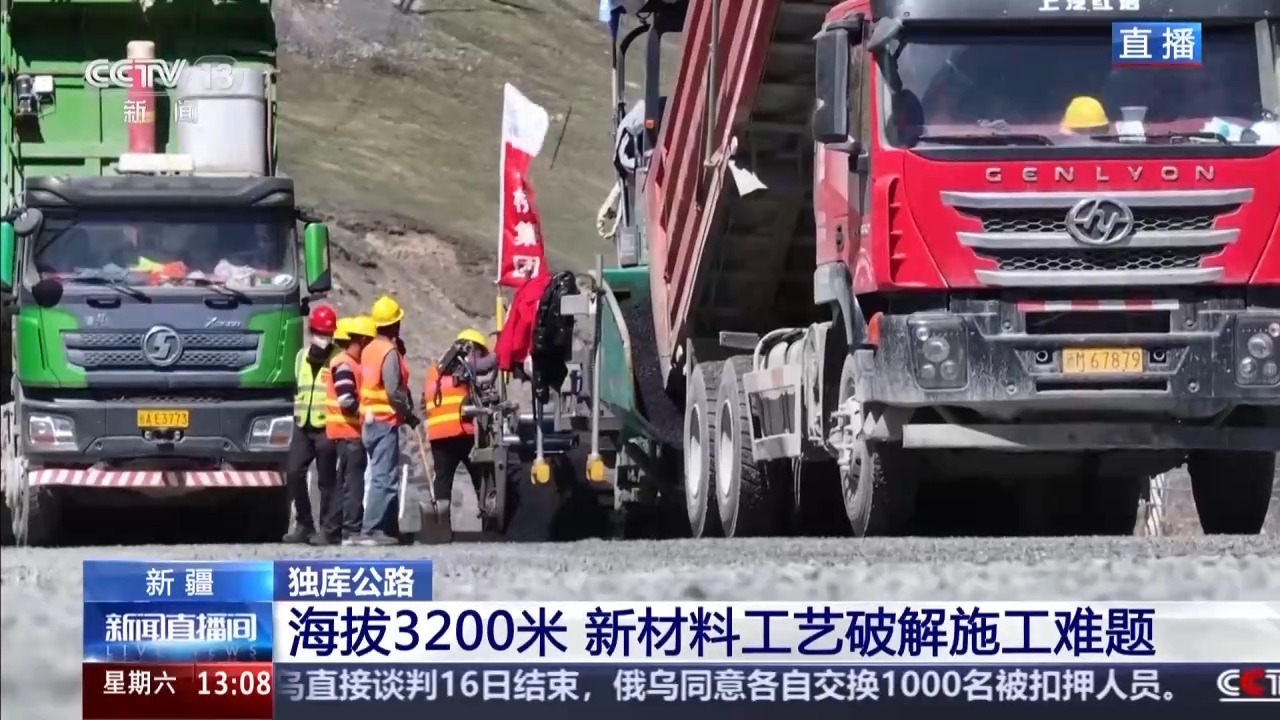 因?yàn)檫@里是高寒高海拔地區(qū),記者腳下的山體都是永久凍土層,氣溫變化凍土層會(huì)出現(xiàn)凍融的情況,凍融就是天氣冷就會(huì)凍住結(jié)冰,天氣暖和就會(huì)融化,凍融的出現(xiàn)會(huì)讓道路出現(xiàn)沉陷的情況。為了應(yīng)對這種凍土層,公路部門也是采取了一種新的試驗(yàn)工藝,這種工藝看起來就和常見的水泥很像,但是這種新工藝具有輕質(zhì)、耐久的特點(diǎn),適合在高原凍土鋪路。