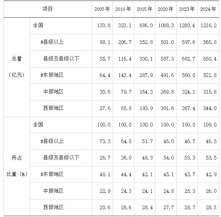 全國文化和旅游事業(yè)費中,縣級以上文化和旅游事業(yè)費565.8億元,占46.5%,比重比上年下降了0.1個百分點;縣級及縣級以下文化和旅游事業(yè)費650.4億元,占53.5%,比重比上年提升了0.1個百分點。東部地區(qū)文化和旅游事業(yè)費521.8億元,占42.9%,比重比上年下降了0.8個百分點。中部地區(qū)文化和旅游事業(yè)費315.8億元,占26%,比重比上年提高了0.7個百分點。西部地區(qū)文化和旅游事業(yè)費344億元,占28.3%,比重比上年下降了0.4個百分點。