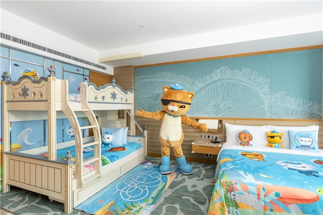新推出的“海底小縱隊(duì)主題房”,以熱門動(dòng)畫片《海底小縱隊(duì)》為藍(lán)本,結(jié)合動(dòng)畫人物IP形象及海洋元素,設(shè)計(jì)了多種房型,為親子家庭打造了一個(gè)充滿童趣與探險(xiǎn)氛圍的親子空間。