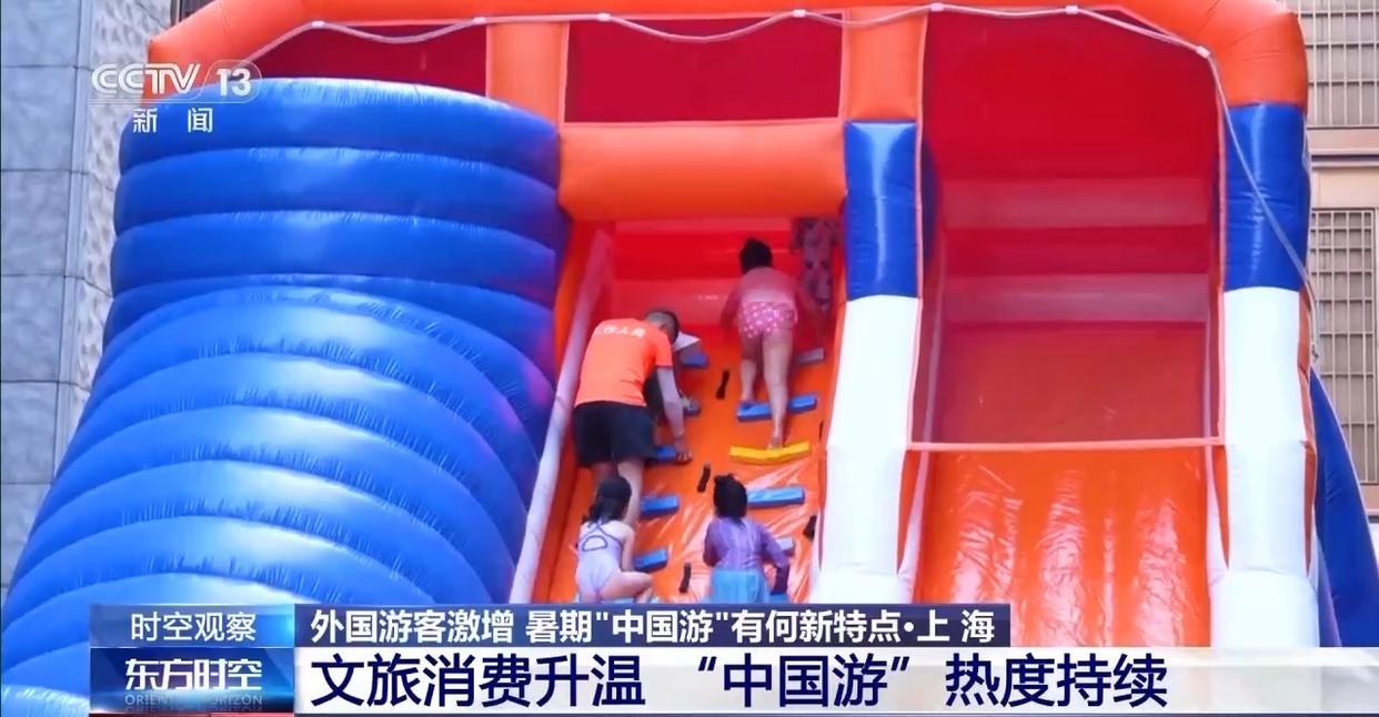 “清涼經(jīng)濟(jì)”也是這個(gè)夏天的熱門(mén)打開(kāi)方式。7月以來(lái),上海外灘搬來(lái)了一座暑期限定的水上樂(lè)園,帶領(lǐng)市民游客開(kāi)啟玩水模式。打水仗、蕩秋千、爬索道,每個(gè)角落都藏著意想不到的清涼驚喜。