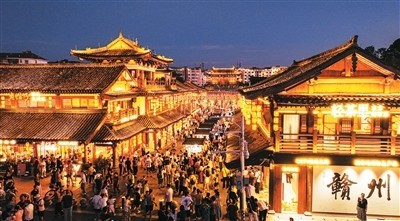 今年夏季,江西省贛州市推動消費(fèi)場景創(chuàng)新,借助系列賽事活動打造“票根經(jīng)濟(jì)”,吸引八方游客前來旅游觀光,帶動消費(fèi)市場持續(xù)火熱。圖為贛州市章貢區(qū)江南宋城歷史文化街區(qū)。