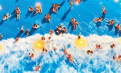 不久前,在江蘇南通森林野生動物園,南通“蘇超”球迷專屬夜公園免費(fèi)暢玩吸引了眾多“蘇超”球迷。凡持有江蘇城市足球聯(lián)賽任意場次票根的球迷,均可享受一次夜公園免票入園。圖為球迷、游客在專屬夜公園水上樂園戲水。