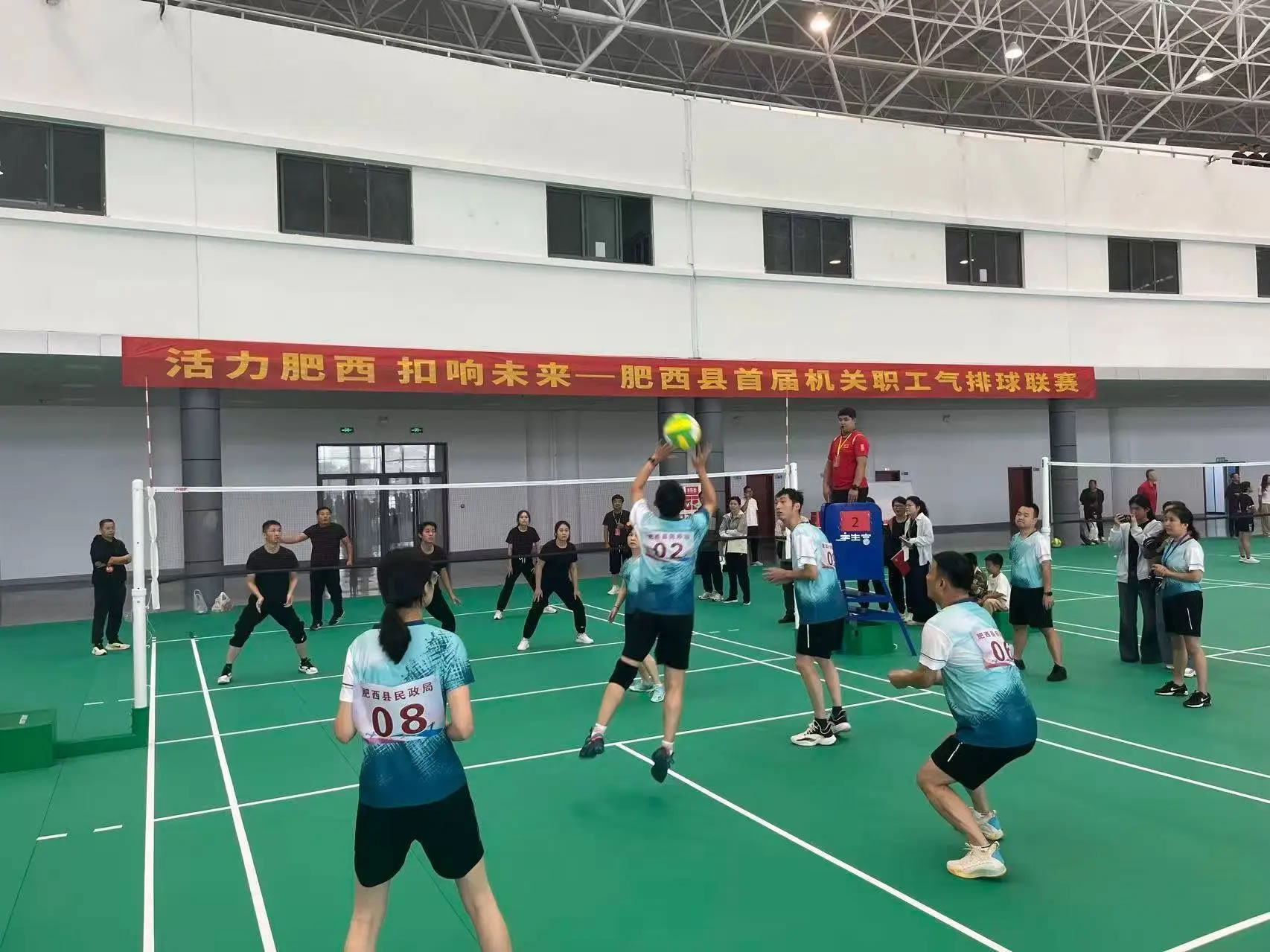 裁判一聲哨響,比賽正式打響。上午8場比賽同時進(jìn)行,參賽各支隊伍迅速進(jìn)入狀態(tài),發(fā)球、墊球、傳球、扣球、攔網(wǎng)……各個環(huán)節(jié)都展現(xiàn)出較高的競技水準(zhǔn)。賽場邊觀眾的加油聲、歡呼聲此起彼伏,將比賽氣氛不斷推向高潮。