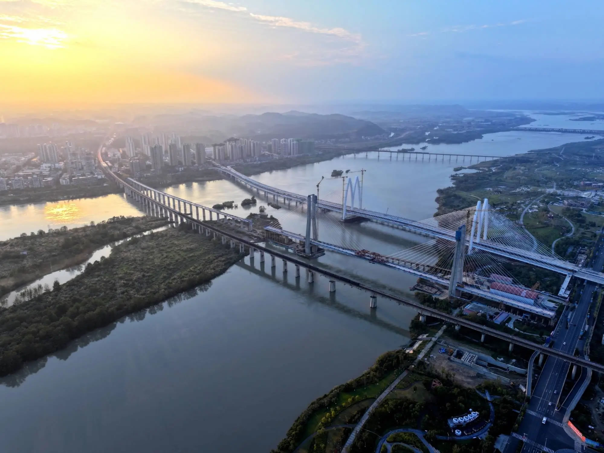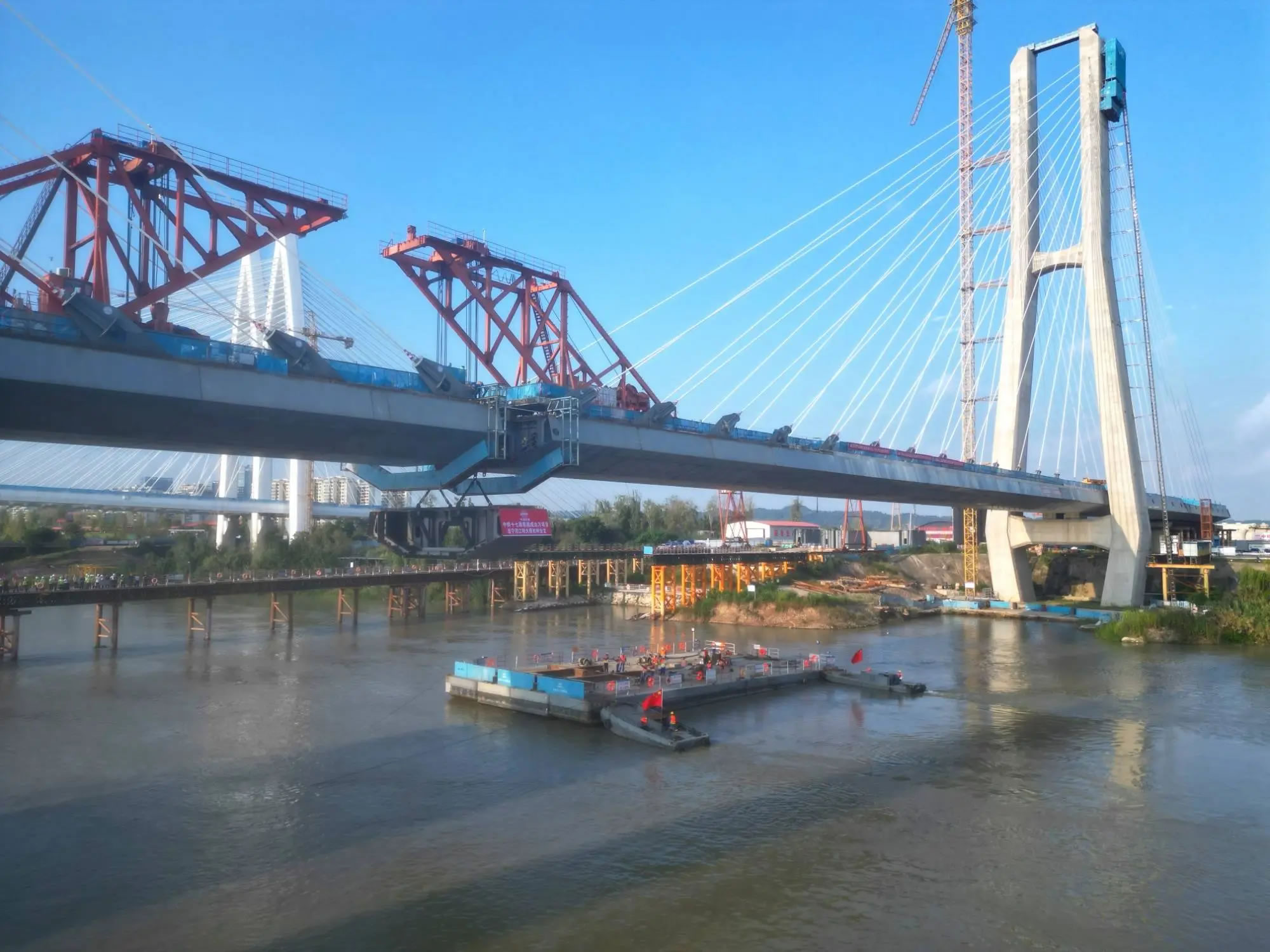 據(jù)中鐵十七局成達萬高鐵項目二工區(qū)總工程師單立國介紹,由于大橋橫跨涪江,施工團隊創(chuàng)新采用“浮運+橋面吊裝”方案,先將鋼箱梁通過浮箱從碼頭運輸至江心指定位置,再運用150噸橋面吊機進行精準提升。為確保合龍精準可控,項目團隊提前謀劃、周密部署。針對大跨度斜拉橋合龍段受力復雜、溫度變形敏感、精度控制要求高等技術(shù)難點,團隊選擇夜間“溫度低、溫差小”時段進行合龍,有效減少溫度變化引起的結(jié)構(gòu)變形,并通過線形監(jiān)控、勁性鎖定等關(guān)鍵技術(shù)措施,最終將線形精度控制在毫米級范圍,實現(xiàn)高質(zhì)量合龍。