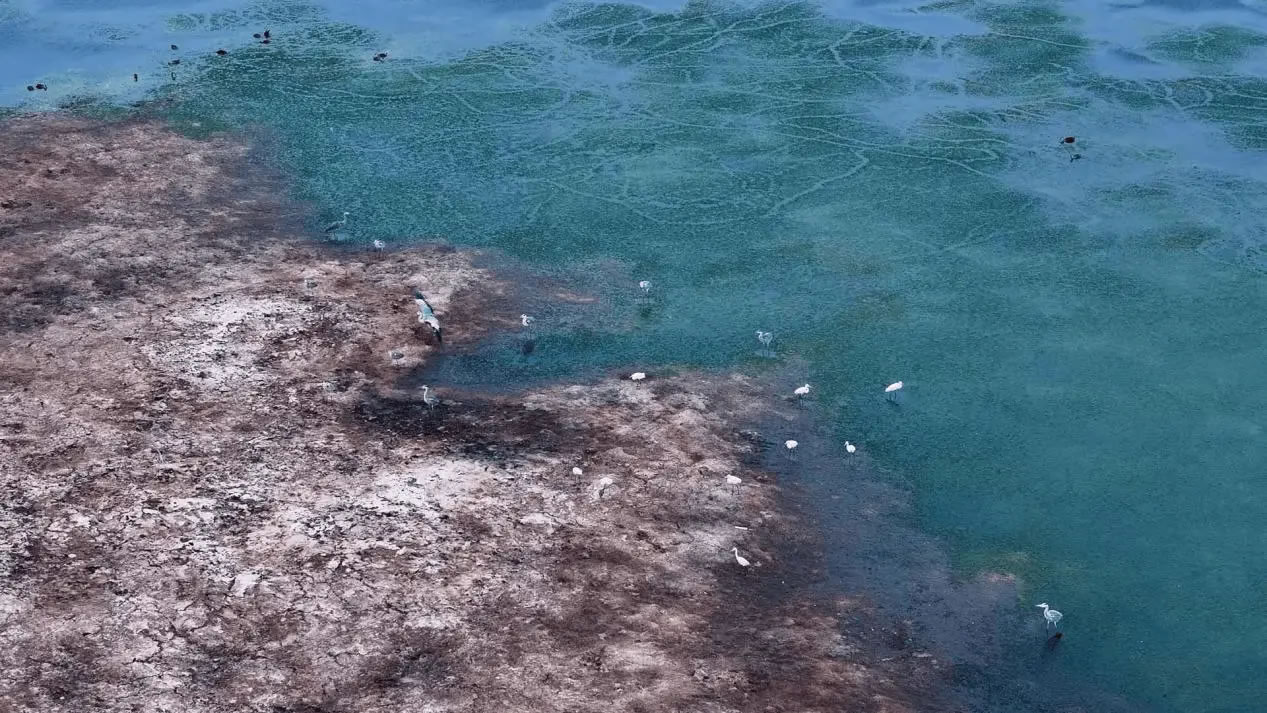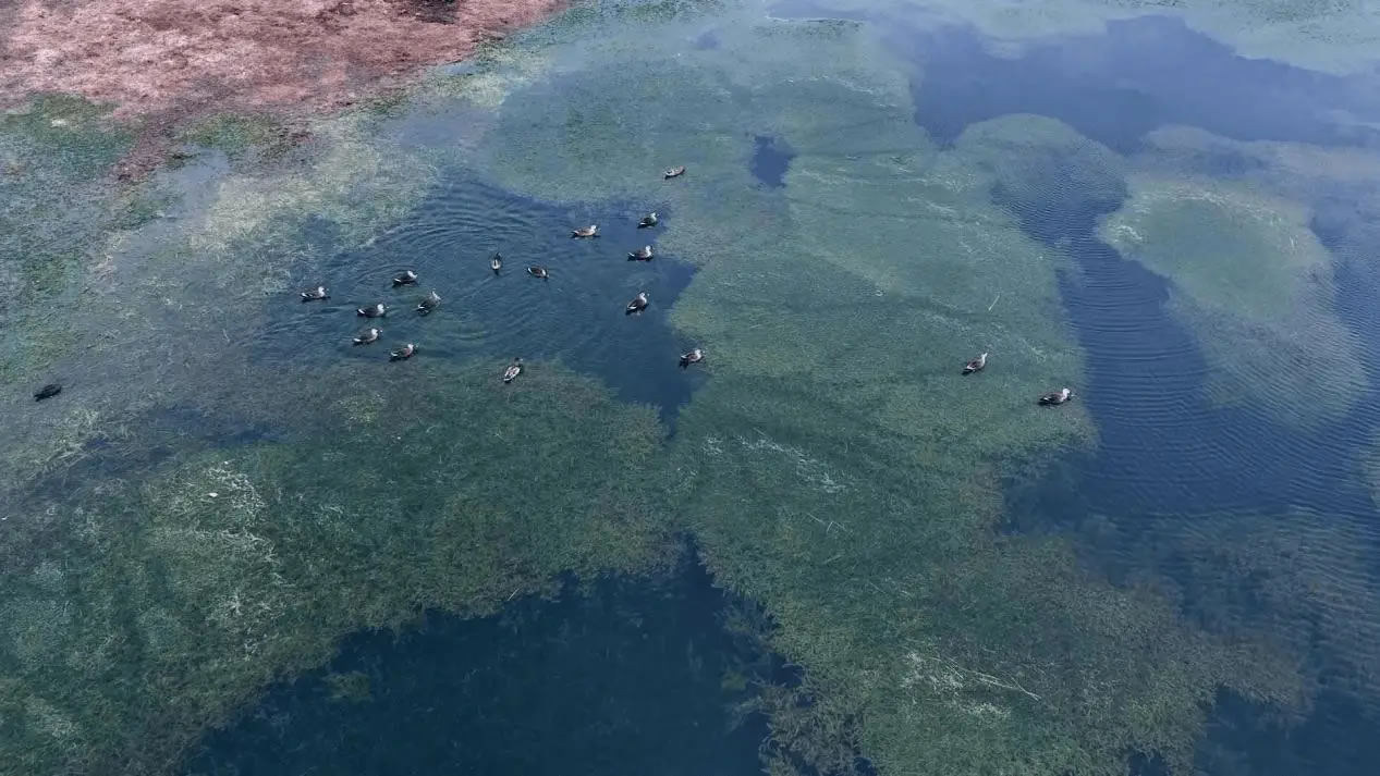 陽(yáng)光灑落時(shí),湖水清澈見底,魚兒在水中自在游弋,與岸邊景致構(gòu)成絕佳畫面。此外,黑翅長(zhǎng)腳鷸也不時(shí)現(xiàn)身灘涂,為這幅生態(tài)圖景再添一抹靈動(dòng)色彩。