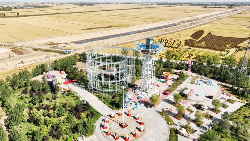 這是農(nóng)文旅深度融合發(fā)展的創(chuàng)新實(shí)踐。作為新中國第一個(gè)集體農(nóng)莊的誕生地,星火村曾創(chuàng)下多個(gè)“第一”,第一個(gè)拖拉機(jī)站、第一個(gè)農(nóng)民水稻科研小組、第一個(gè)寫入小學(xué)課本的新中國集體農(nóng)莊.....如今,這份紅色基因與5000平方米生態(tài)稻田、朝鮮族民俗風(fēng)情深度交融,催生出獨(dú)特的文旅IP。登上40余米高的星火塔,可俯瞰稻海翻波;體驗(yàn)430米玻璃水滑梯,能感受速度與清涼的碰撞;在星火時(shí)光供銷社追憶往昔,于星火工坊體驗(yàn)打糕制作,讓游客在一靜一動(dòng)間觸摸歷史溫度與民俗魅力。自景區(qū)開園開始,首屆非遺美食文化節(jié)、寒地小龍蝦節(jié)、稻種嘉年華等特色創(chuàng)意活動(dòng)相繼舉辦,共計(jì)吸引客流108萬余人,帶動(dòng)收入8600萬元,印證了“以文塑旅、以旅興農(nóng)”的鮮活成效。