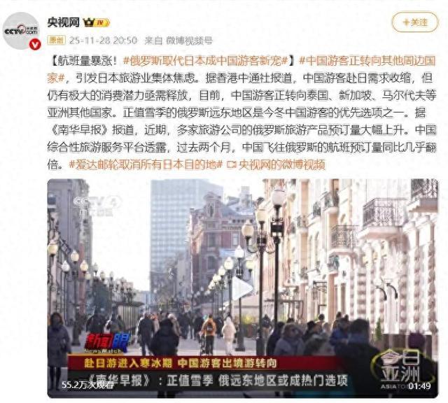 航班量暴漲!俄羅斯取代日本成中國(guó)游客新寵