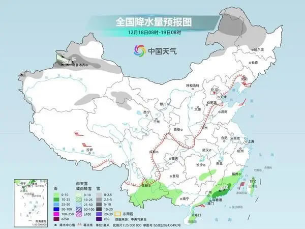 后天,內(nèi)蒙古東北部、黑龍江中北部、新疆北部和南疆西部山區(qū)、甘肅河西等地部分地區(qū)有小到中雪或雨夾雪,其中,新疆沿天山地區(qū)和伊犁河谷局地有大到暴雪。湖南南部、福建東部和南部、西南地區(qū)南部、廣西西南部、廣東東部和南部、海南島東部、臺灣島東部等地部分地區(qū)有小到中雨,其中,廣東東部局地有大雨。