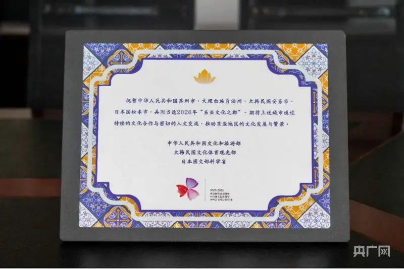 央廣網(wǎng)大理1月7日消息(記者 魏文青)近日,2026年“東亞文化之都”評選結(jié)果在北京揭曉,大理白族自治州成功當(dāng)選,成為云南省首個獲此殊榮的城市,也為云南參與東亞城市文化交流打開新的門戶。