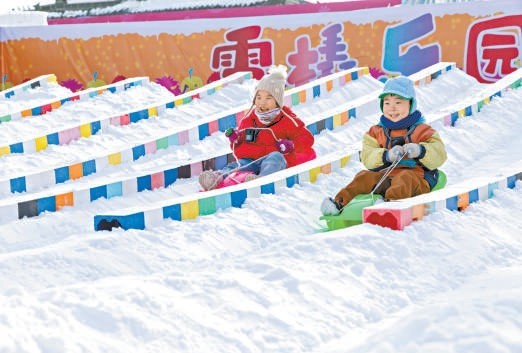 龍?zhí)豆珗@冰雪節(jié)雪橇樂(lè)園吸引小朋友來(lái)體驗(yàn)。