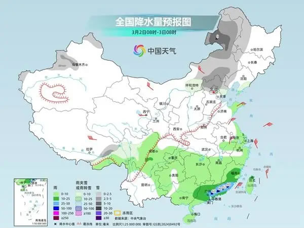 氣象部門提醒,今明天,我國雨雪范圍較大,正值春運返程,公眾請合理規(guī)劃出行計劃,留意交通安全。江南、華南陰雨持續(xù)時間長,并伴有強(qiáng)對流天氣,需做好相關(guān)防御工作。
