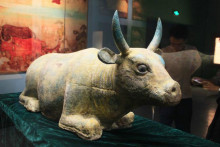 在第177號陪葬墓的墓室中,出土有鎏金銅牛、鐵狗等金屬制品,還有石馬等石雕。在第78號陪葬墓中,出土有石狗等石雕。在第182號陪葬墓中,發(fā)現(xiàn)開元通寶、樣符通寶、天圣元寶、皇宋通寶、熙寧通寶等錢幣。墓室內(nèi)還發(fā)現(xiàn)綠釉罐和白瓷碗殘片,殘碎銅片、銅塊,殘斷銀絲、銀帽鐵釘?shù)取?/p>