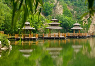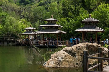 九如山以自然山水而聞名,山依水勢(shì),水奪天工,托起一片世外奧區(qū)。遠(yuǎn)遠(yuǎn)望去,可見(jiàn)泉涌成溪,溪流成瀑,瀑落成潭,潭潭相通,匯集成八潭明鏡。是所謂:峽谷有流,聚在平湖,山泉涓滴,匯成高潭。層層疊嶂,層層儲(chǔ)水,一年四季,不管天公旱澇,無(wú)論氣候寒暑,九如山的潭水總是那樣清瑩玉潔,滋潤(rùn)山體。游人可以在潭中泛舟,可以在池邊戲水,享受天開(kāi)畫(huà)境,觸摸水景幻變,放懷吸取大自然的無(wú)窮靈感。