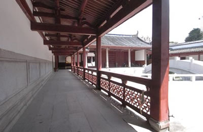 大成殿東西兩側的房子叫“兩廡”,是后世供奉先賢 先儒的地方這配享的賢儒大都是后世儒家學派中著名的人物,如董仲舒、韓愈、王陽明等。在唐朝僅有20余人,經過歷代增添更換,到民國時,多達156人。這些配享的人原為畫像,金代改為塑像,明成化年間一律改為寫有名字的木制牌位,供奉在一座座的神龕中,F(xiàn)在兩廡中陳列著歷代石刻。