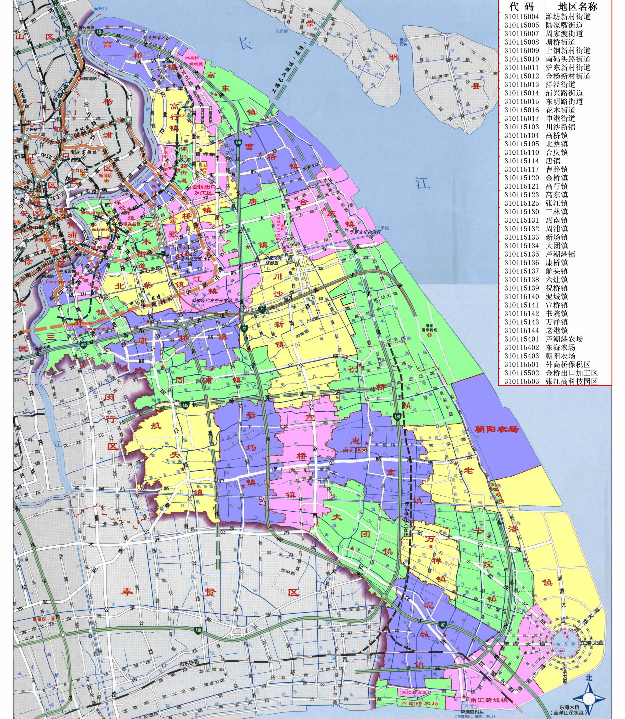 鎮(zhèn):川沙新鎮(zhèn)、高橋鎮(zhèn)、北蔡鎮(zhèn)、合慶鎮(zhèn)、唐鎮(zhèn)、曹路鎮(zhèn)、金橋鎮(zhèn)、高行鎮(zhèn)、高東鎮(zhèn)、張江鎮(zhèn)、三林鎮(zhèn)、惠南鎮(zhèn)、周浦鎮(zhèn)、新場(chǎng)鎮(zhèn)、大團(tuán)鎮(zhèn)、康橋鎮(zhèn)、航頭鎮(zhèn)、祝橋鎮(zhèn)、泥城鎮(zhèn)、宣橋鎮(zhèn)、書(shū)院鎮(zhèn)、萬(wàn)祥鎮(zhèn)、老港鎮(zhèn)、南匯新城鎮(zhèn)