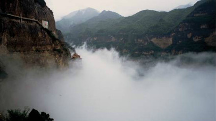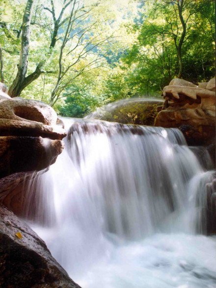 8、二十公里的水濤溝、蒼巖、曲徑、奇樹、怪石、山花、野草點(diǎn)綴其間,北魏酈道元《水經(jīng)注》所說的綿山 石桐水千回百轉(zhuǎn) ,湍湍流過,蒼鷹低回空谷鳥鳴,組成了一幅奇特的山水畫卷。其中的五龍飛瀑落差80余米,游人可從瀑下通過;水簾洞府瀑流從洞前飛流直下,洞內(nèi)可容納三四十人。這樣的風(fēng)光,在北方地區(qū)實(shí)屬罕見。