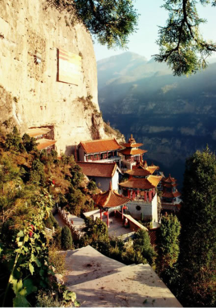 2、抱腹巖的山勢(shì)奇特為天下"絕無僅有"。它高60米,寬180米,深50米?梢员Ф儆嚅g殿宇館舍及一兩萬名游人于其中。驚險(xiǎn)壯觀的巖下飛空掛鈴,更為一絕。