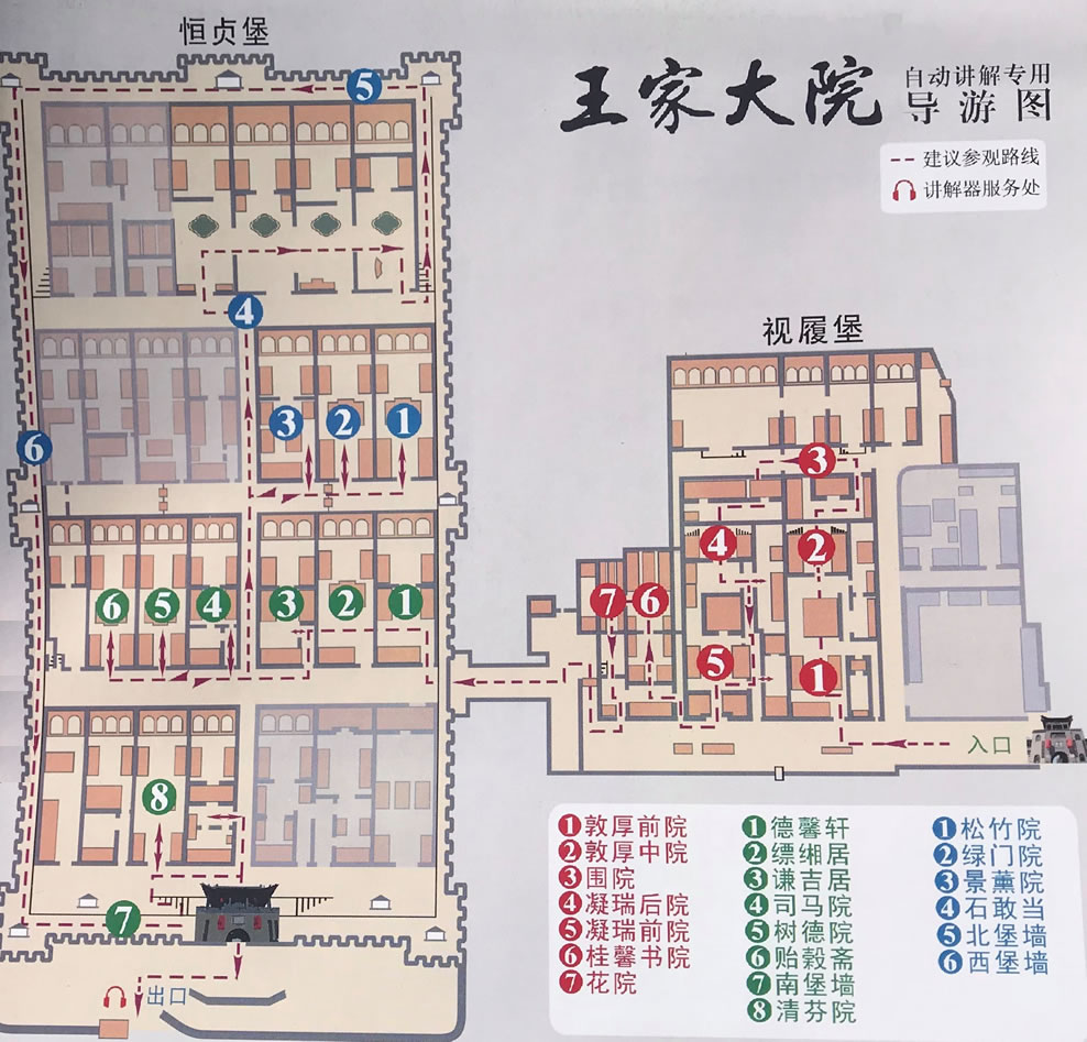 王家大院的建筑格局,繼承了中國西周時形成的前堂后寢的庭院風格,既提供了對外交往的足夠空間,又滿足了內(nèi)在私密氛圍的要求,做到了尊卑貴賤有等,上下長幼有序,內(nèi)外男女有別,且起居功能一應俱全,充分體現(xiàn)了官宦門第的威嚴和宗法禮制的規(guī)整。