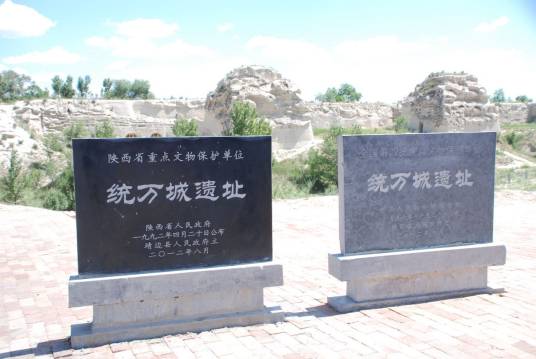 統(tǒng)萬城,因其城墻為白色,當(dāng)?shù)厝朔Q白城子。又因系赫連勃勃所建,故又稱為赫連城。為東晉時(shí)南匈奴貴族赫連勃勃建立的大夏國都城遺址,也是匈奴族在人類歷史長河中留下的一座都城遺址,是中國北方最早、最著名的都城,已有近1600年歷史。統(tǒng)萬城始建于公元413年,竣工于公元418年,由漢奢延城改筑而成。后來在北魏太武皇帝拓跋燾一統(tǒng)北方期間,統(tǒng)萬城被攻克,從此設(shè)置為統(tǒng)萬軍鎮(zhèn)。
