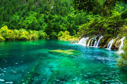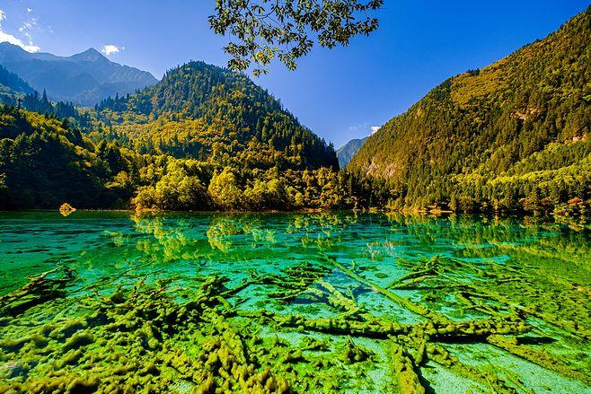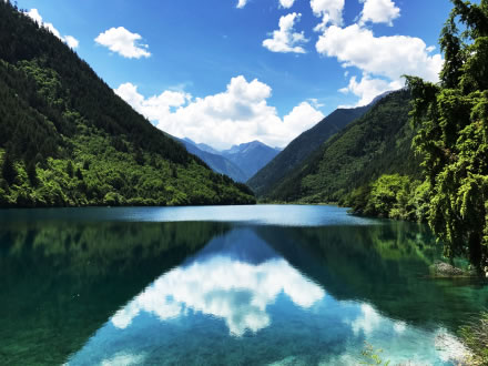 炎炎夏日,似火驕陽(yáng)與粘濕汗水籠罩了整個(gè)大地,而此時(shí)的九寨溝卻截然不同。她掩映在整片整片蒼翠欲滴的濃陰之中,茂盛的林木守衛(wèi)著海子,歡快的流水梳理著樹(shù)枝與水草,一切都透著清爽。