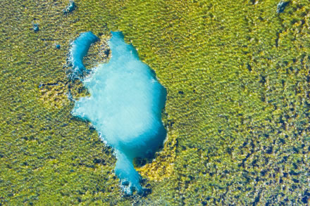 嫩芽悄然出現(xiàn),一抹抹新綠因重獲生機(jī)而生長(zhǎng)得日益茂盛,春風(fēng)吹醒了封凍的海子,吹皺了一汪碧水,水色是幽靜的藍(lán)、清新的綠、淺淺的黃。無(wú)風(fēng)的晴日,山林樹(shù)色盡數(shù)倒映其中,呈現(xiàn)出對(duì)稱(chēng)之美。