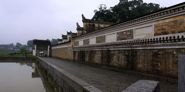 順著小鎮(zhèn)往東行走,在遮天蔽日的大榕樹的身影下,到了花溪河邊。遠(yuǎn)山含黛,朦朧中竹影搖曳,順著小鎮(zhèn)往東行走,在遮天蔽日的大榕樹的身影下,到了花溪河邊。遠(yuǎn)山含黛,朦朧中竹影搖曳,炊煙裊裊,山、樹、青瓦木屋,一并倒映在清亮的小河之中。小河上有人為筑成的石路,當(dāng)?shù)厝朔Q之為跳蹬,是連接兩岸的通道,石路的鋪設(shè)阻止了水的流動(dòng),涓涓細(xì)流在這里駐足停留,平靜得如同鏡子,成了當(dāng)?shù)厝思忆揭孪床说牡胤,也成了魚蝦談情說愛的平靜港灣。美中不足的是跳蹬上布滿了垃圾,讓不少遠(yuǎn)方來客感到一種失落和遺憾。
