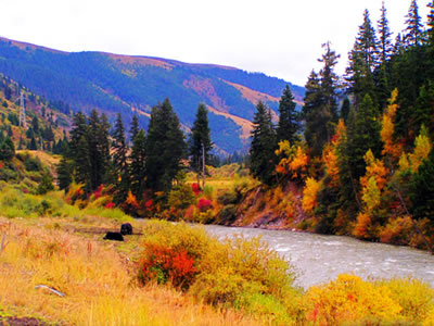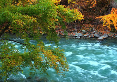 “米亞羅”是藏語,意即“好耍的壩子”,地處岷江支流雜谷腦河谷地帶。“雜谷腦”也是藏語“吉祥”的意思。風(fēng)景區(qū)內(nèi)群山連綿,江河縱橫,風(fēng)光宜人,尤其是當(dāng)秋風(fēng)乍起之時,風(fēng)景區(qū)內(nèi)沿雜谷腦河谷兩岸密林中的楓樹、槭樹、樺樹、鵝掌松、落葉松等漸次經(jīng)霜,樹葉被染成為綺麗的鮮紅色和金黃色。這時候,萬山紅遍,層林盡染,3000平方公里的紅葉,如春花怒放,紅濤泛波,金黃流丹,三千里紅葉裝飾著三千里江山,成為一大奇觀。