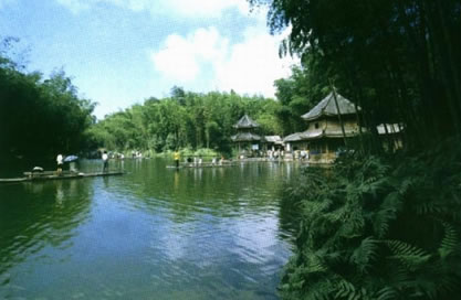 青龍湖景區(qū),面積3.06平方公里,以大型水面和歷史遺跡為主。蜀南竹海青龍湖位于高聳險峻的插旗山下,水面3平方公里,是蔥蘢竹海之中的最大湖泊。湖身呈龍狀,頭大尾小,故名青龍湖。